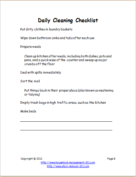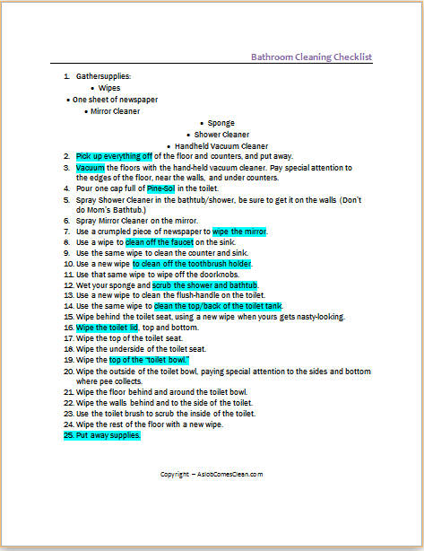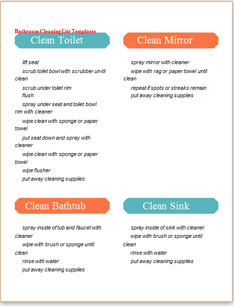 Bathroom Cleaning List Templates: