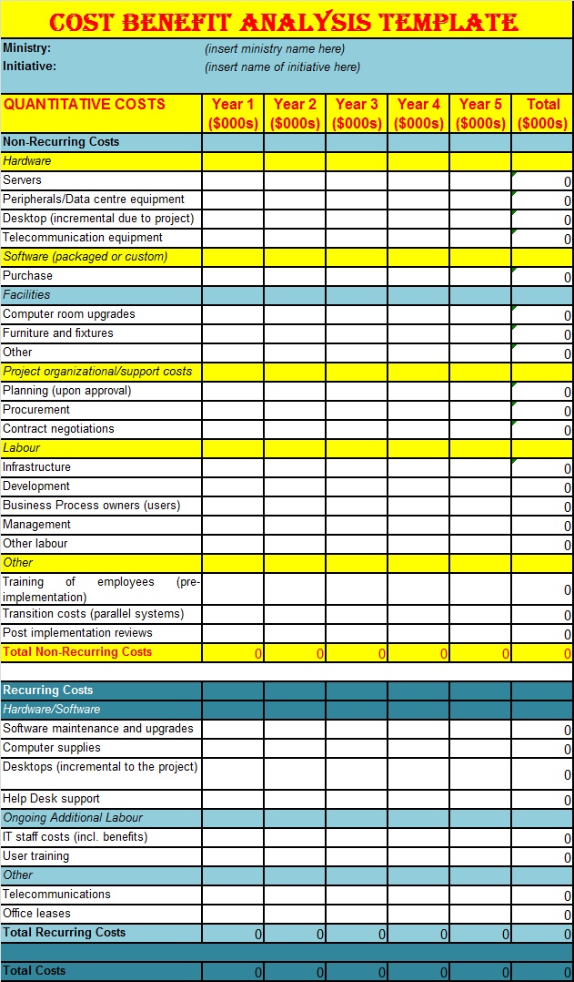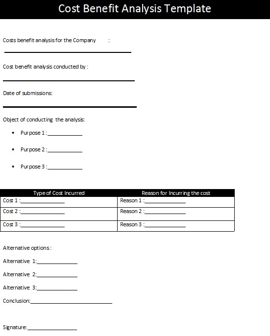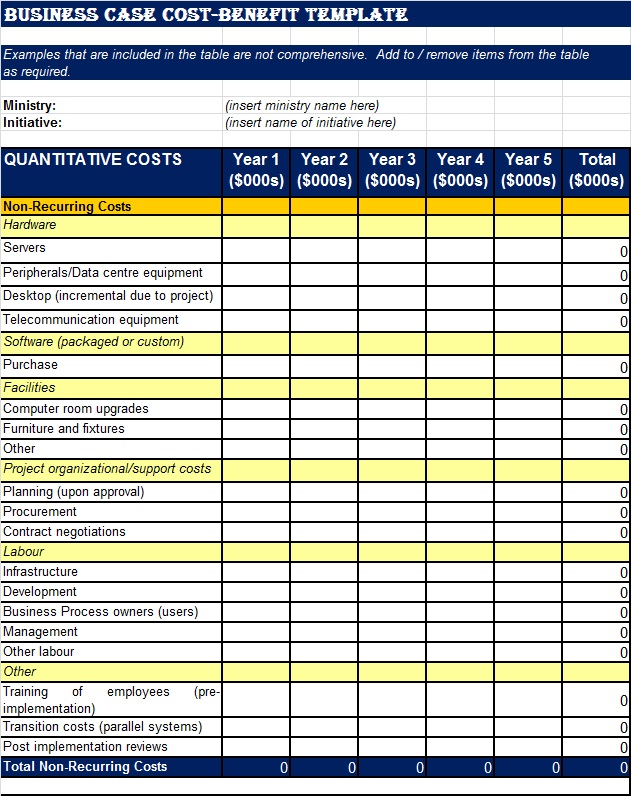 Business Cost Benefit Analysis Template