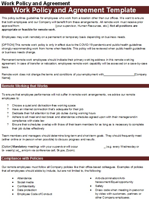Employee Work Policy Agreement Template: