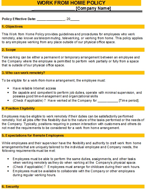 Work From Home Policy Sample: