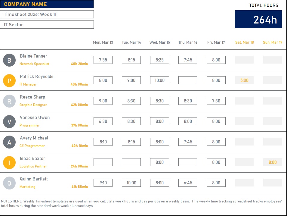 Daily & Weekly Timesheet Template