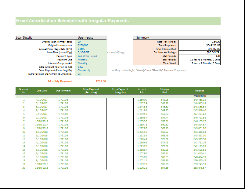 Payment Schedule For Irregular Payments Template;