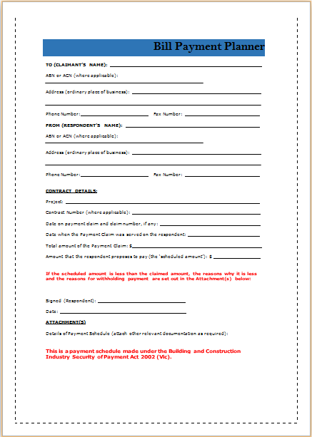 Free Payment Schedule Templates(Bills):